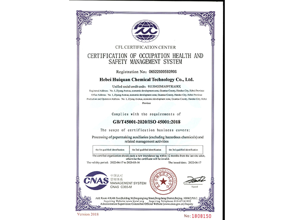 職業(yè)健康安全管理體系認(rèn)證證書(shū)(英文版)