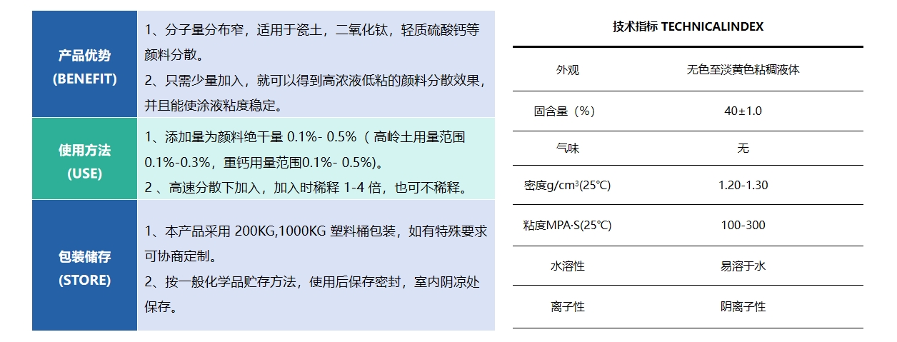 HQ-S933M 分散劑,是聚胺酸系列涂料分散劑,極易溶于水,對(duì)無機(jī)頻料 有很好的分散劑和降粘效果。使涂布漿料有極具流動(dòng)性。